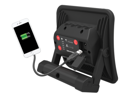 The NOVA R is a 1,500 lumens portable rechargeable COB LED work flood light. It has dimming capability over a 5 step range. The NOVA R can also charge external devices with a USB connection.,